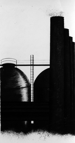 Blast Furnace, Charcoal on Paper, 3ft 6" x 7ft, 1997 |