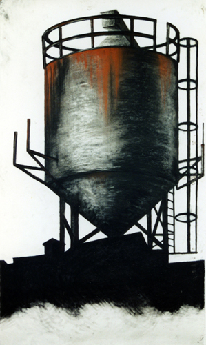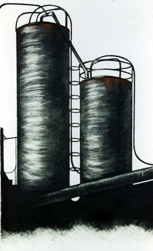 Gas Tank, Charcoal on Paper, 3ft 6" x 8ft, 1997 |